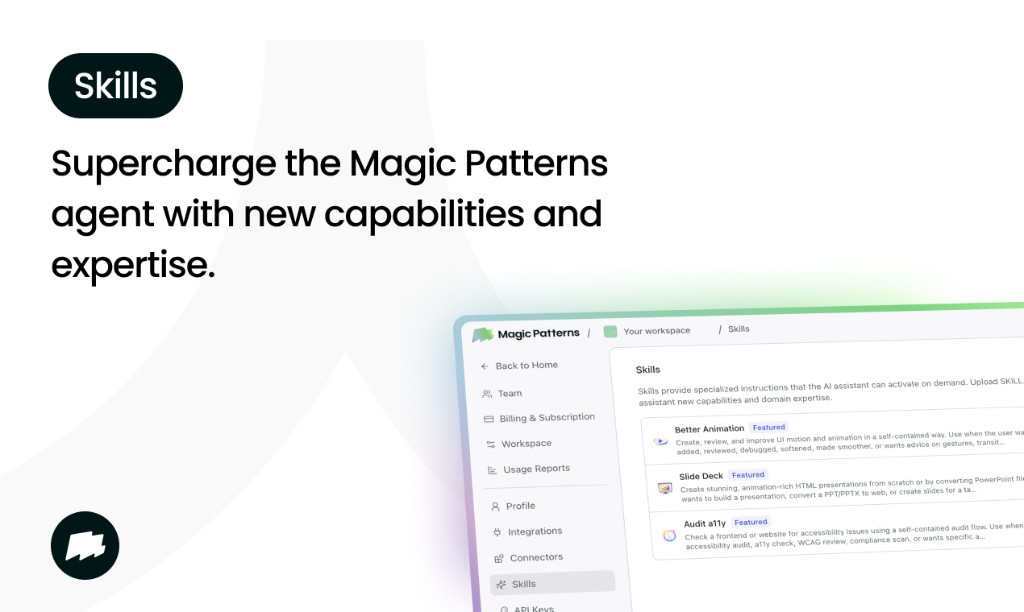 Today, we're launching Magic Patterns Agent 2.0, the culmination of 3 years of observing real customer workflows and AI design use cases.